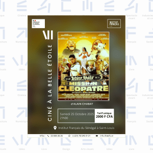Sous les étoiles, vivez une soirée cinéma inoubliable avec la projection du film Astérix et Obélix : Mission Cléopâtre d’Alain Chabat . Retrouvez Christian Clavier, Gérard Depardieu, Jamel Debbouze, et Monica Bellucci dans une comédie mythique pleine d’humour et d’aventures ! Venez en famille, entre amis ou en couple pour partager un moment convivial, drôle et magique sous le ciel de Saint-Louis. Jardins de l’Institut français du Sénégal à Saint-Louis